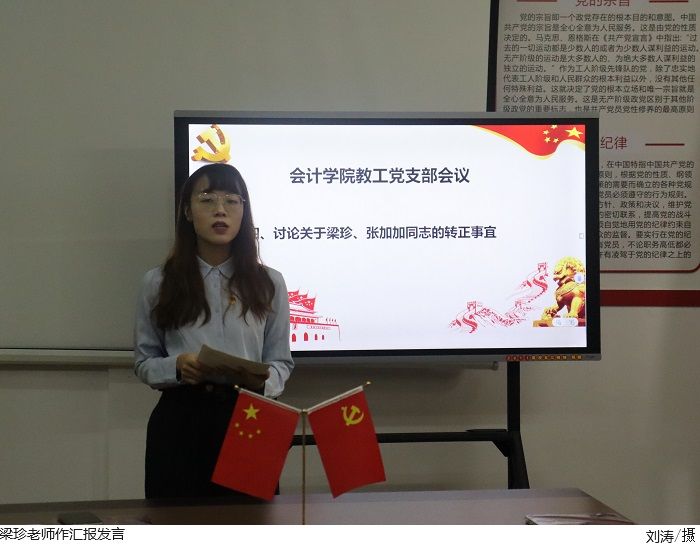 随后,张加加老师和梁珍老师分别汇报自身的入党动机及学习情况,入党介绍人和支部委员会汇报培养教育考察情况,与会党员对发展对象提出意见和建议。最终,大会通过无记名投票表决一致同意接收张加加、梁珍为中共正式党员。