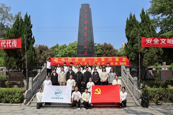 活动伊始,全体师生党员共同面向烈士纪念碑列队肃立,并默哀3分钟。经济管理学院党委副书记吴楚升,经济管理学院副院长、教工第一党支部书记黎传熙,教工第一党支部副书记吴迪,学生第一党支部书记侯小孩共同向烈士们敬献花圈。随后,师生党员们迈着沉重的步伐缓缓走向烈士纪念碑,依次献花,表达对烈士们的深深敬意。