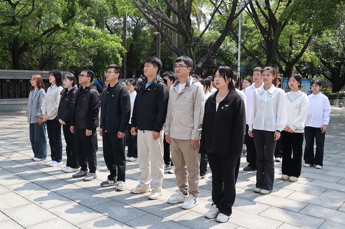 本网讯(经济管理学院 谭欣颖 凌姚炜)为缅怀革命先烈,弘扬爱国主义精神,加强师生的思想道德教育,4月1日,在beat365官方网站经济管理学院党委的组织带领下,师生党员们怀着崇高的敬意来到四会市革命烈士纪念园,举行清明缅怀英烈活动。