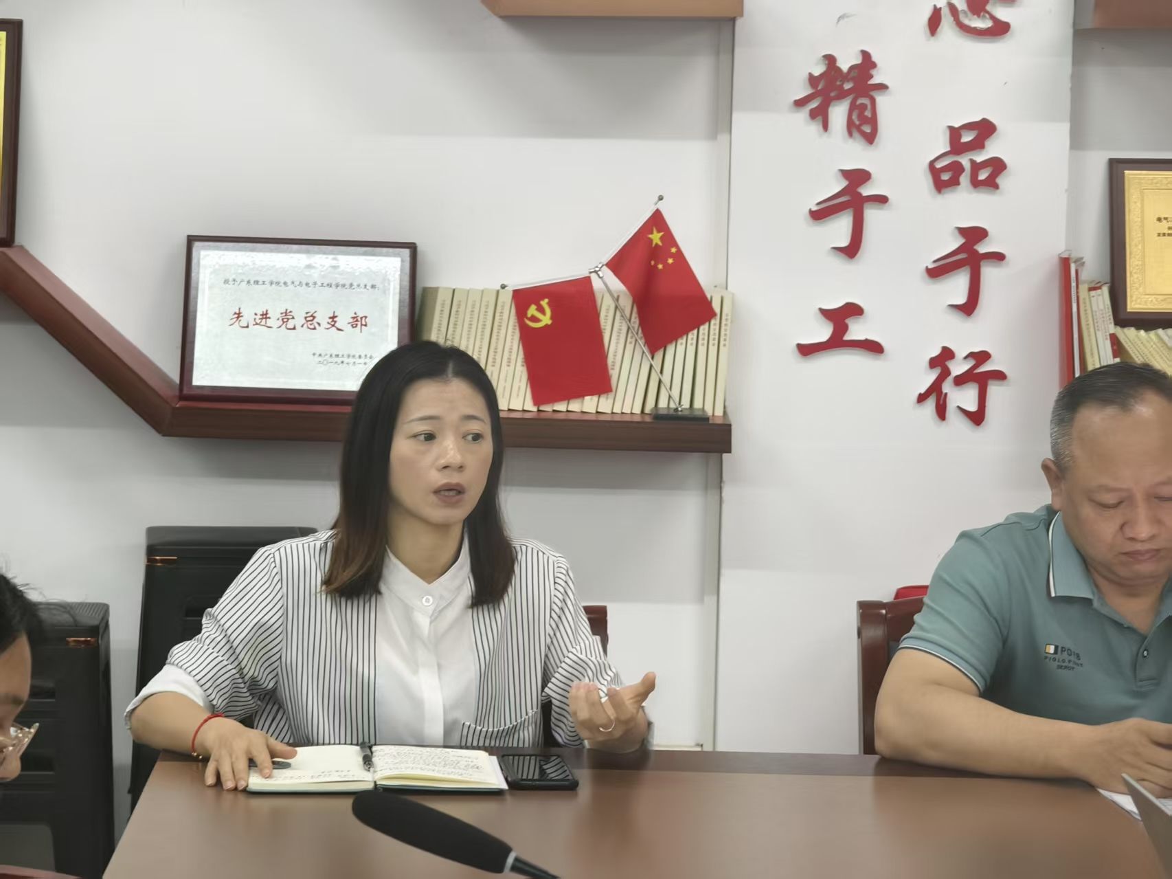 随后,辅导员们依次进行发言。他们结合自身工作实际,带来了丰富多样的案例分享。赵蓓怡讲述了如何通过耐心细致的沟通,成功化解学生之间的矛盾冲突;黎锦清分享了在学生心理健康教育方面的创新举措;廖钰玲介绍了组织特色主题活动、凝聚班级向心力的有效方法。在分享心得与自我成长时,他们纷纷表示,辅导员工作既是一份责任,更是一份使命,在陪伴学生成长的过程中,自身也收获了满满的成就感,实现了专业能力与综合素质的全面提升。每位辅导员都积极分享工作中的宝贵经验与深刻感悟,现场交流氛围浓厚。