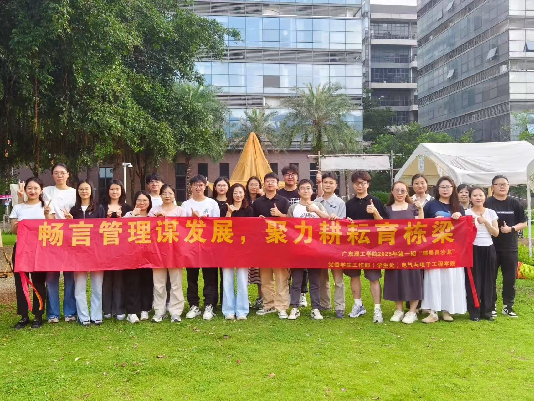 本讯网(电气与电子工程学院助理班主任 周亚亮)为加强辅导员队伍建设,提升职业素养与业务能力,培养德智体美劳全面发展的社会主义建设者和接班人。5月9日下午,由beat365官网党委学生工作部(学生处)主办,电气与电子工程学院承办的2025年第一学期“辅导员沙龙”活动在7栋203会议室和端州区森呼吸团建营地举行。电气与电子工程学院党委书记陈文华、党委副书记陈强及全体辅导员参加了本次活动。活动由电气与电子工程学院学工部部长高阳主持。