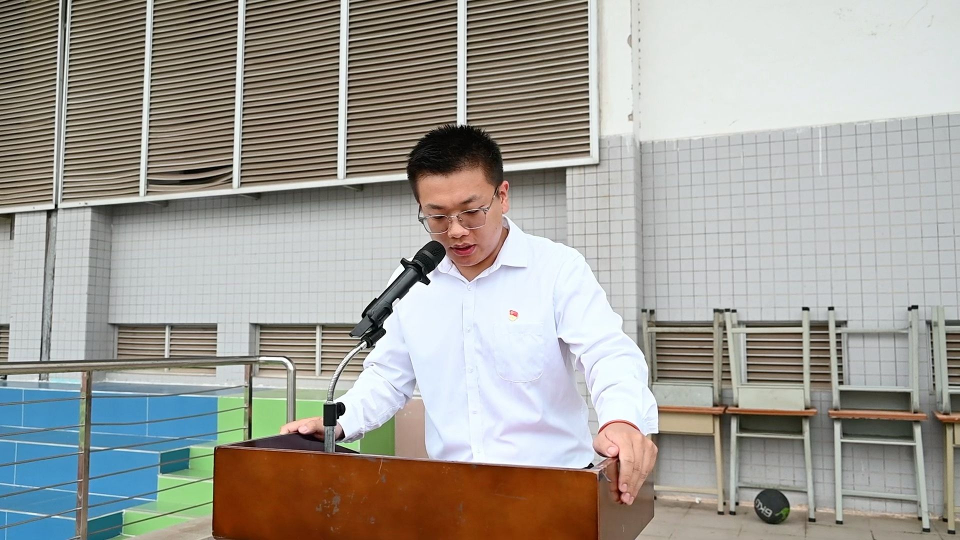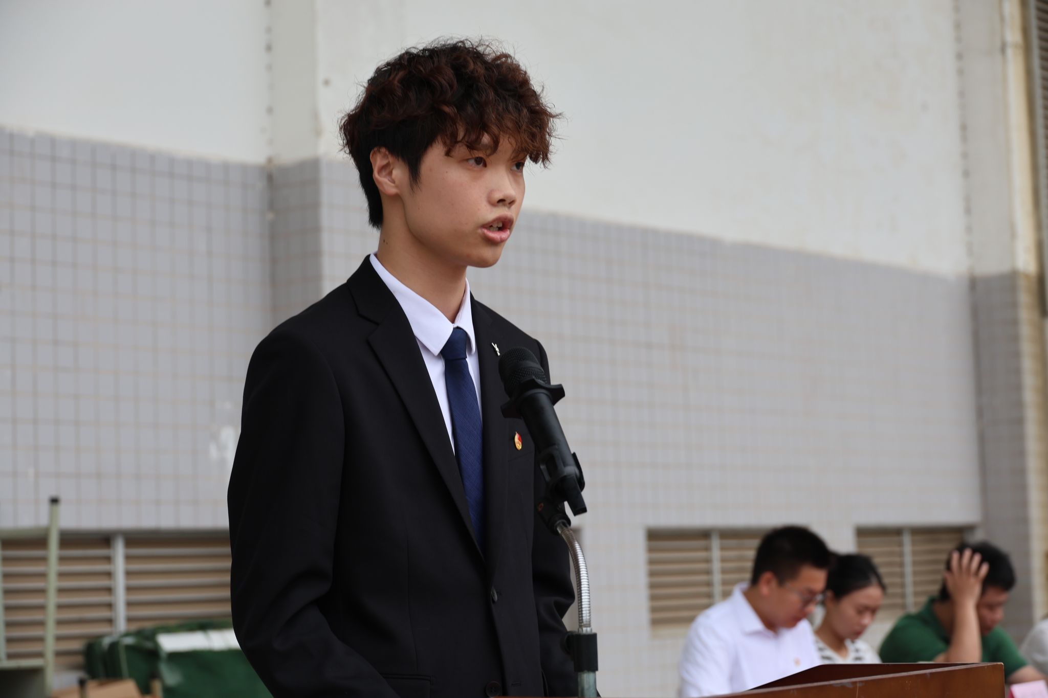 黄烨晖同学分享了他坚定目标、勤奋学习、勇于创新、团结协作的成长历程,并呼吁大家:“新时代中国青年要勇于砥砺奋斗,在青春的赛道上奋力奔跑,跑出当代青年的最好成绩! ”