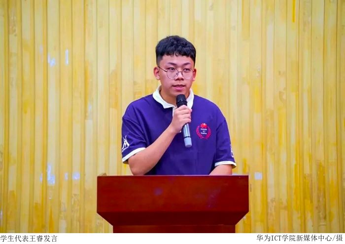 2022 级本科通信工程创新班王睿作为学生代表发言致谢。他以 “规划、践行、突破” 回顾大学时光:学习上主动钻研,结合理论实践提升能力,考取多类证书,成绩优异,参与学科竞赛积累团队经验;在校期间担任学生会主席、参与志愿活动锻炼组织沟通能力,作为新媒体中心负责人推动学院媒体建设。他鼓励同学把握大学时光,全面发展。