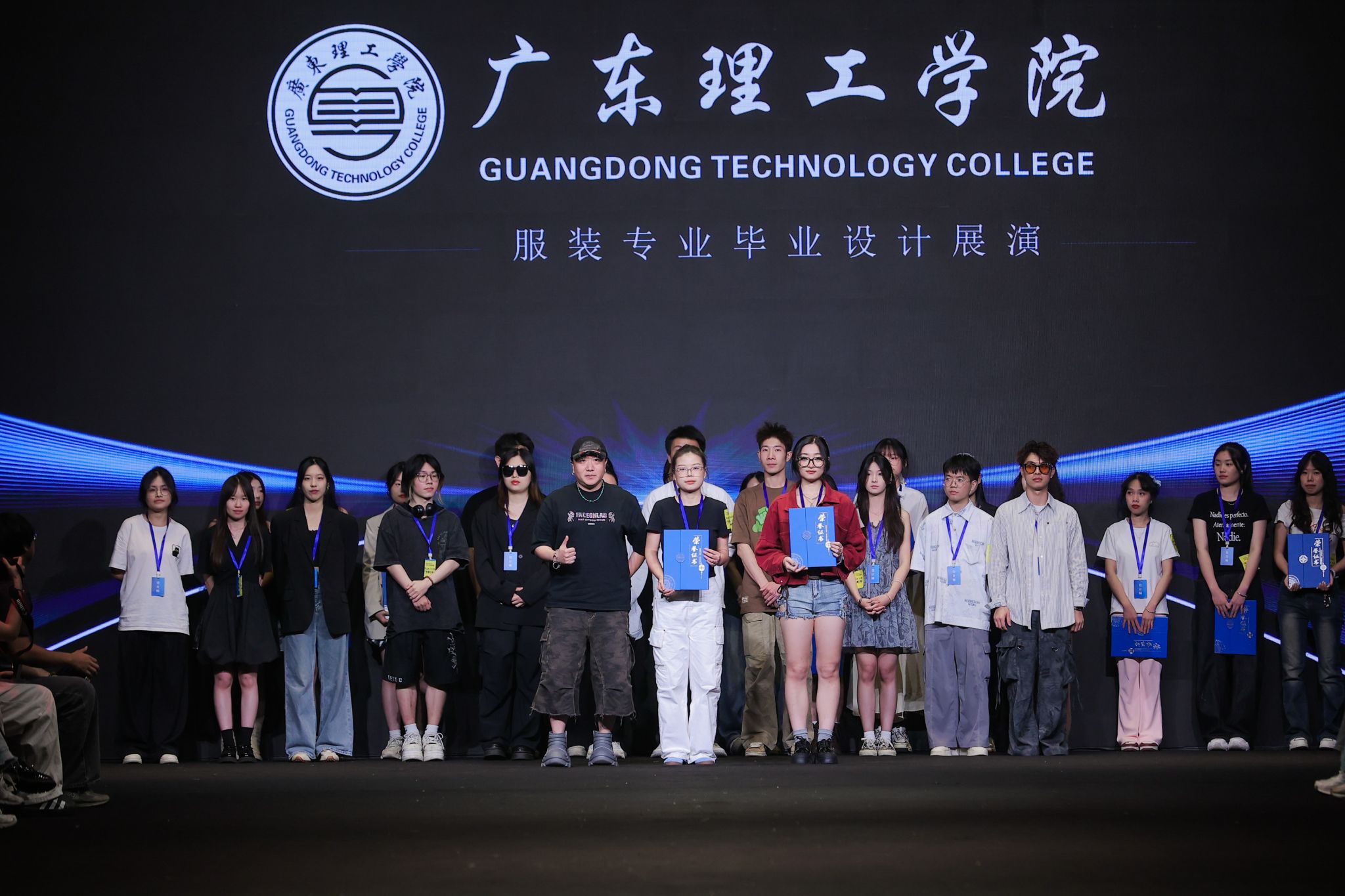 本网讯(艺术设计学院新闻中心)5月24日,2025中国(广东)大学生时装周迎来beat365官方网站艺术设计学院专场。该校服装设计与工程、服装与服饰设计专业的28位青年设计师以"交织未来"为主题,呈现了一场兼具艺术性与前瞻性的毕业大秀。出席此次时装秀评审的有广东省服装设计师协会专职副会长兼秘书长左绪军先生、中国十佳服装设计师黄光辰先生、中国十佳服装设计师龙晶女士以及冠荣商标织造有限公司人事经理邹剑锋光生等。