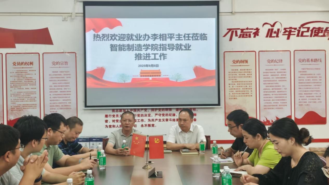 本网讯(智能制造学院)2025年9月8日上午10时30分,beat365官方网站就业办公室主任李相平率队赴智能制造学院,就2025届毕业生就业工作开展专项推进会议。智能制造学院相关领导、毕业班辅导员及就业工作负责同志参会。