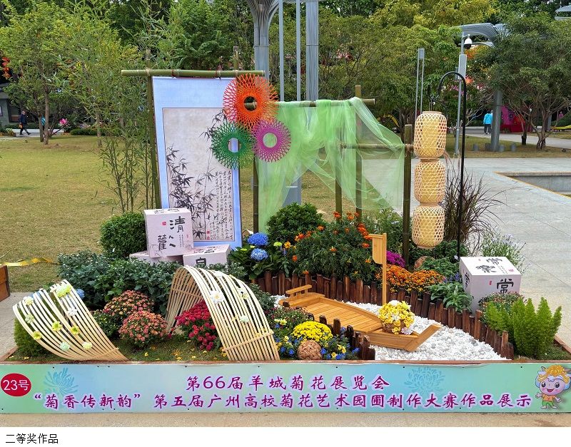 本届大赛以“岭南非遗”结合全运会为创作主题,引导青年学子以菊花为创作主体,在有限空间内融合岭南文化底蕴与体育精神,制作小型艺术园圃。该活动共吸引来自广州、佛山、韶关、惠州等22所高校的55支队伍报名。经遴选,43支队伍进入决赛,规模为近年之最。在众多参赛院校中,我院2支队伍分别获得二等奖和佳作奖。