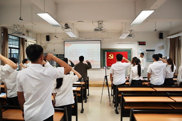 经过与会党员的充分讨论和无记名投票表决,大会一致同意接收胡浩南等7名同志为中共预备党员。在党建中心指导老师汤璐的带领下,预备党员们面向党旗庄严宣誓。