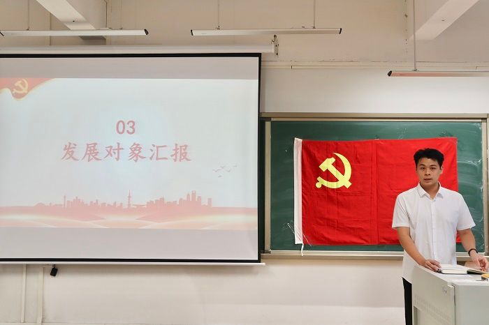 紧接着,胡浩南等7名发展对象依次上台汇报,他们分别从思想觉悟、理论学习、工作表现与生活实践等方面详细汇报了个人情况,充分展现了向党组织靠拢的坚定决心。