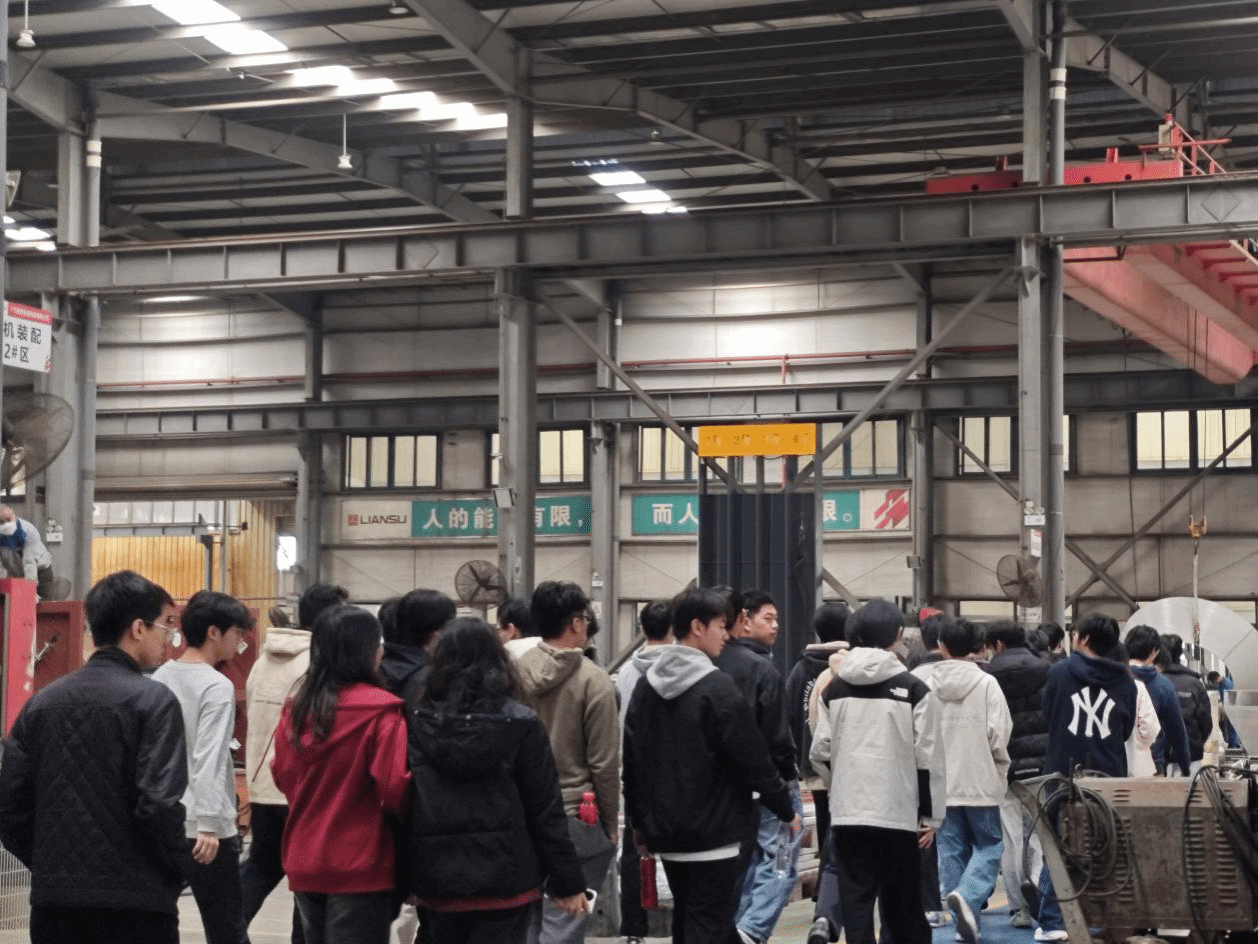 见习第二站,师生团队来到广东联塑机器制造有限公司。在人力资源总监沈斌、招聘经理陈妙怡的全程陪同下,大家深入生产车间,实地察看各类机器设备的运行流程、核心产品的研发生产线,详细了解企业在智能制造、质量管控等方面的先进理念。车间内规范化的管理、智能化的设备、高效化的生产节奏,让同学们对制造业的现代化发展有了全新认知。