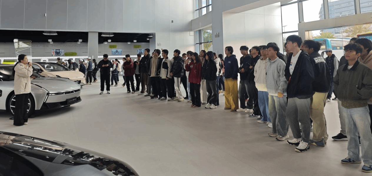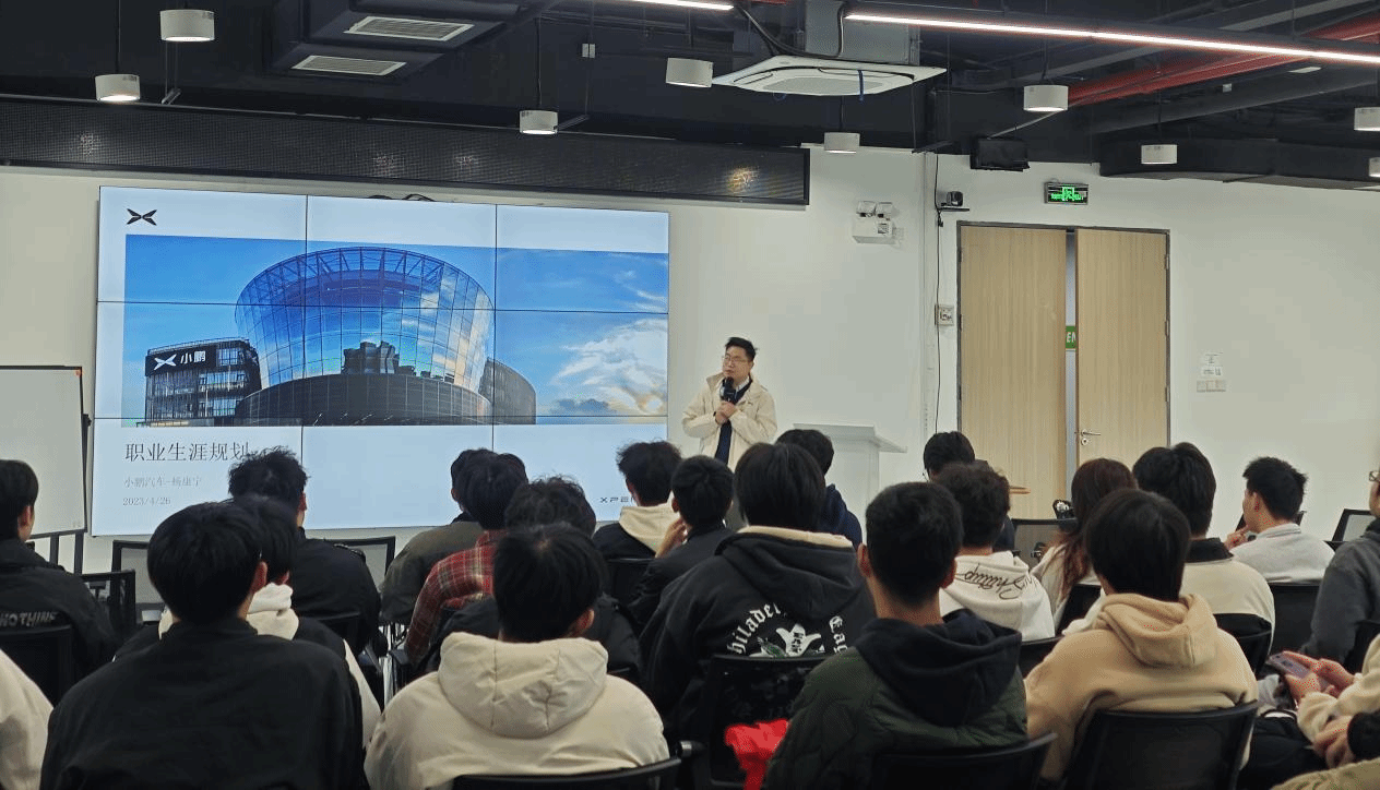 参观结束后,小鹏汽车公共事业经理杨康宁、对外接待经理曹经理带来了一场干货满满的职业规划分享会。两位经理以"企业视角下的职业成长"为主题,结合自身从业经验,从行业发展趋势、企业人才需求标准、职业规划核心要点等方面展开讲解,为同学们梳理职业发展脉络。互动环节中,同学们围绕"专业技能与岗位匹配""职场晋升路径"等问题积极提问,经理们耐心解答,现场氛围热烈融洽。