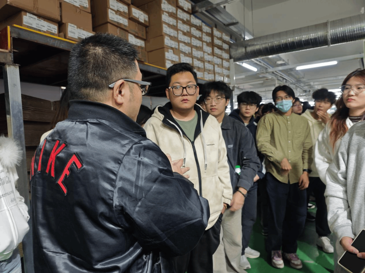 见习最后一站,师生们走进槿泓电子有限公司。在人力资源总监梁总的带领下,大家穿梭于电子元器件生产车间、检测车间,近距离观察产品研发、生产、检测的全流程,深入了解企业在电子领域的技术优势、业务范围及市场竞争力,专业知识与产业实践的联结更加紧密。