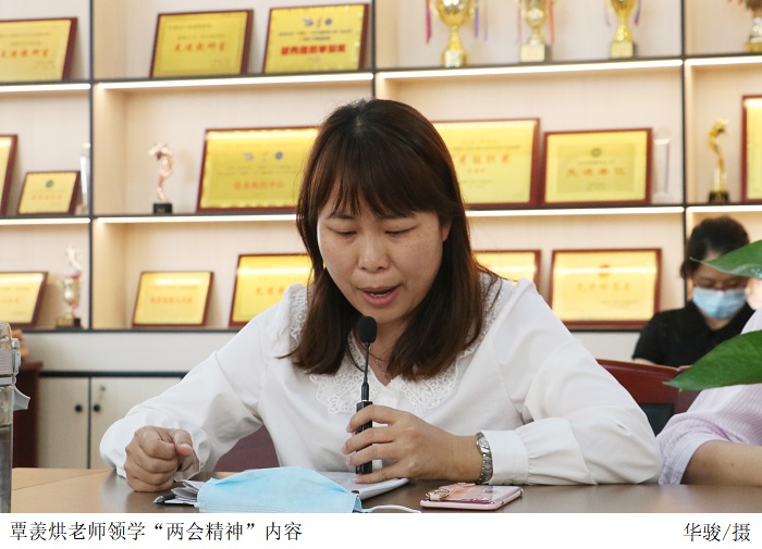 覃羡烘老师领学习近平总书记在中青年干部培训班开班式上的重要讲话精神,并谈了心得体会。她说作为青年党员,要坚持将政治标准放在首位,筑牢理想信念根基,坚守马克思主义信仰,矢志不渝为共产主义远大理想和中国特色社会主义共同理想而奋斗;作为青年教师,要担当起为党育人,为国育才的初心使命,落实立德树人的根本任务,加强学习,更新知识,不断提高业务能力和教育教学质量。
