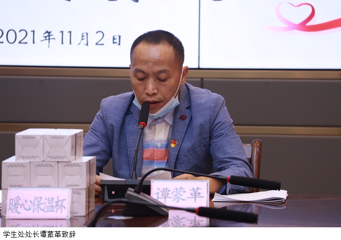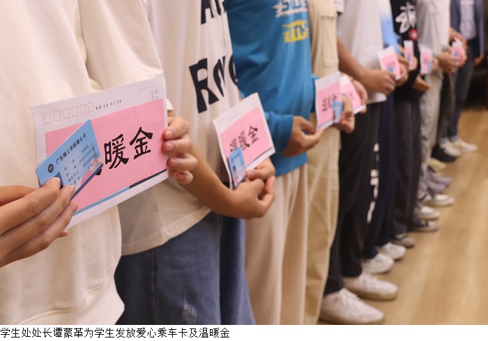 会上,谭蒙革为21名受助学生发放了爱心乘车卡、暖心保温杯和温暖金。谭蒙革表示,一直以来,beat365官网高度重视残疾学生帮扶工作,创新性地利用现有资源,为出行不便的学生提供免费的校内接驳车服务,为他们解决实际问题,使他们感受到学校的关怀。他希望同学们有钢铁般的意志,重视学习,学好本领,回报社会,实现自我价值。