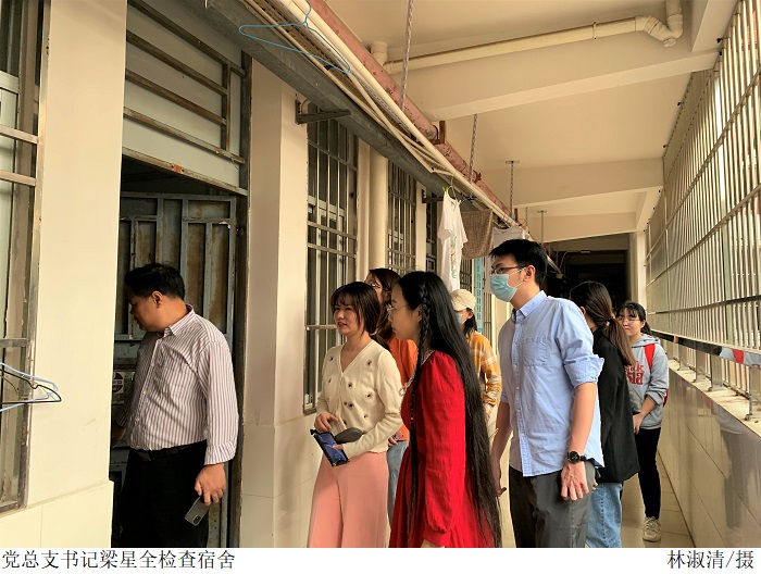 本网讯(信息技术学院 黄林曼)为贯彻落实和积极推进安全、文明、和谐校园的建设,进一步加强学校安全管理,及时排查学生宿舍中存在的问题。10月18日,信息技术学院师生代表在学院党总支书记梁星全、副书记冷云峰的组织带领下,开展学生宿舍安全大检查工作。