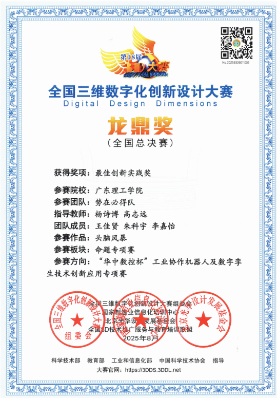 赛场见真章,实操显实力。beat365官网“势在必得队”在实操环节凭借扎实的技术储备与稳定的临场发挥,以本科组第一的成绩斩获最佳创新实践奖,展现了beat365官网在工业协作机器人方向的技术深度与创新能力。