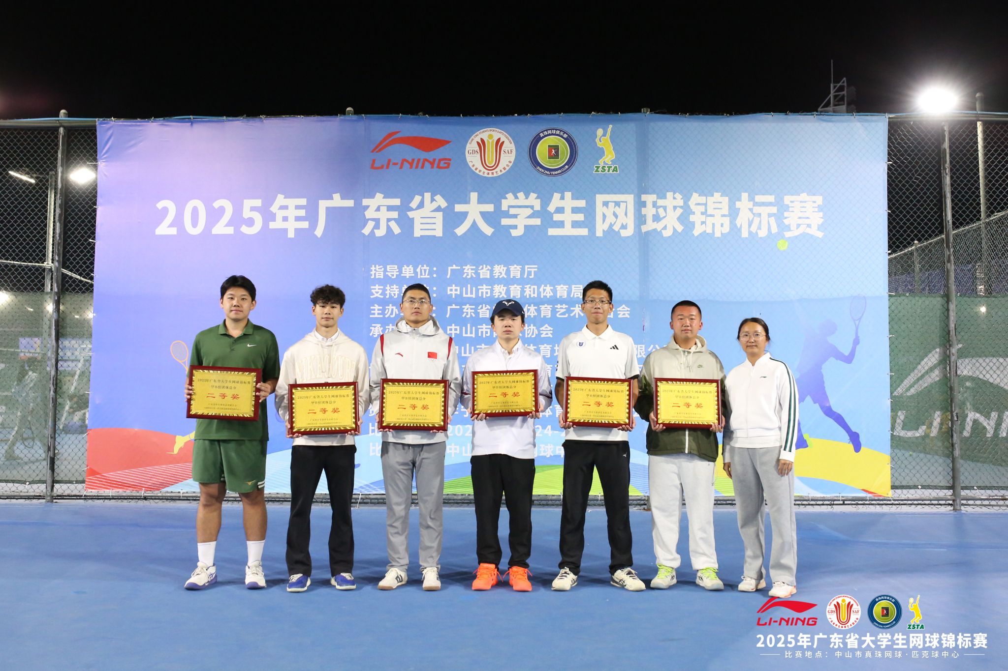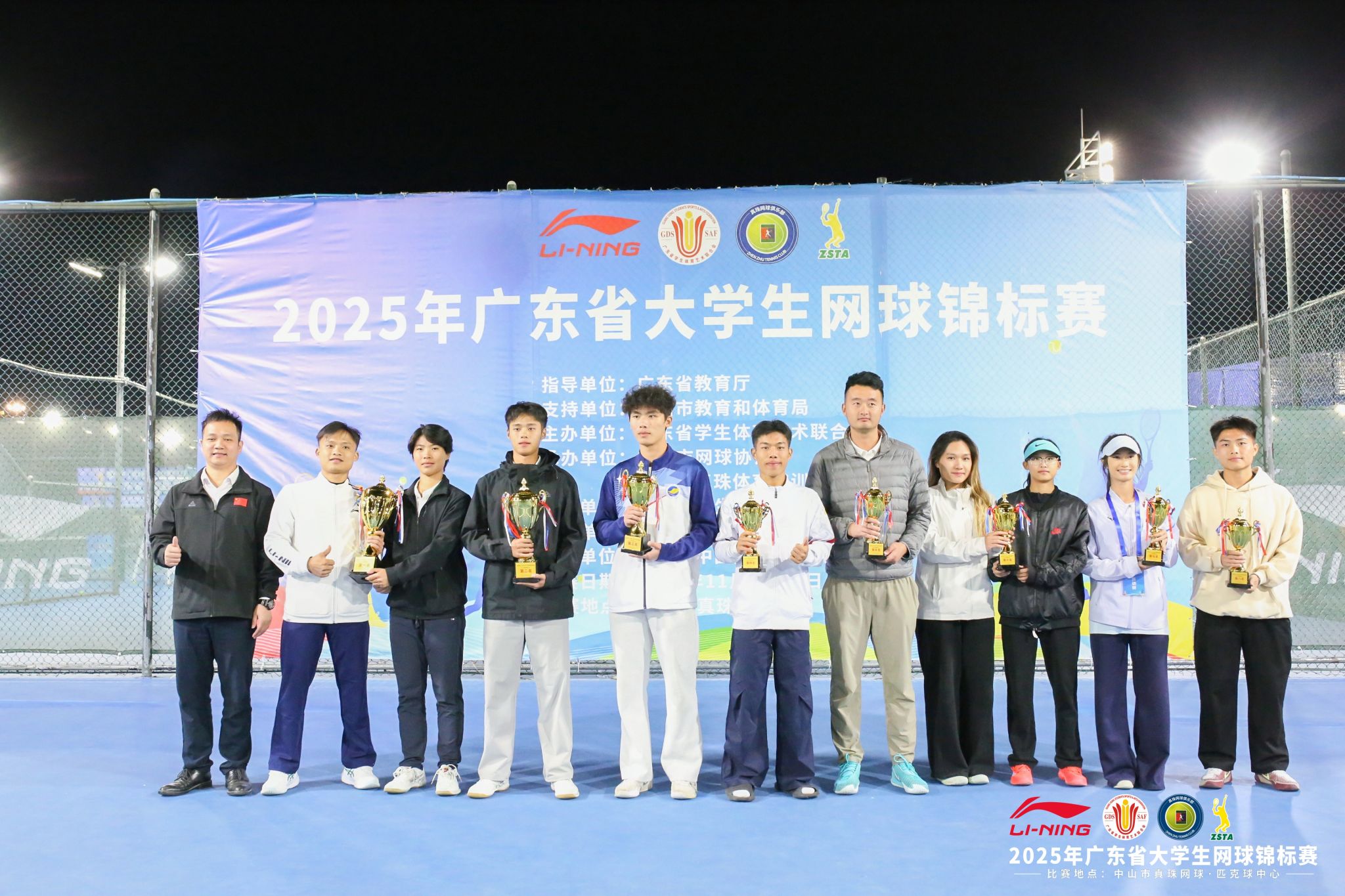本网讯(体育学院)由广东省学生体育艺术联合会主办的2025年广东省大学生网球锦标赛在中山真珠网球中心圆满落幕。本次赛事于11月24日至28日激情开赛,汇聚全省高校646名网球精英同台竞技。beat365官方网站网球队由体育学院院长肖斌担任领队,夏磊、刘涛、胡进城三位老师担任教练员,派出18名运动员参赛,凭借扎实的技术功底、默契的团队协作与顽强的拼搏精神,在各组别赛事中捷报频传,最终斩获乙A组团体总分一等奖,甲B组团体总分二等奖。用实力书写青春荣光。
