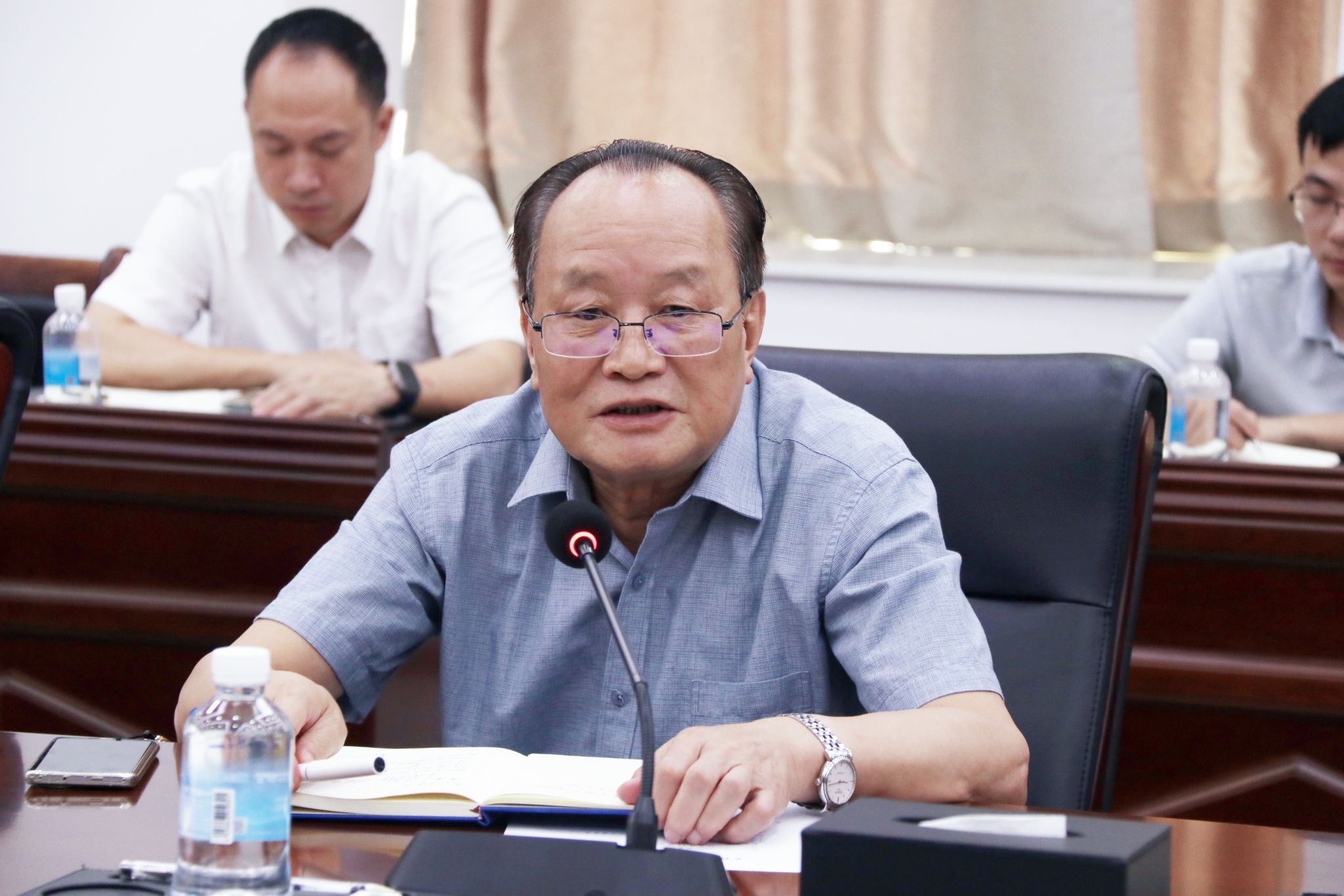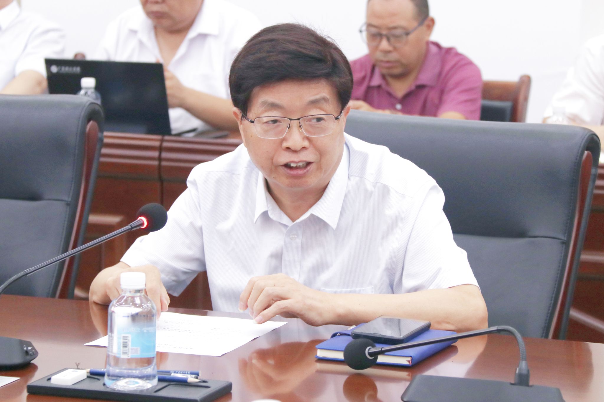 最后,胡海建书记在讲话中强调,本科教学工作合格评估是学校切实提升办学质量与人才培养质量的重要契机,各部门、单位要加强沟通与交流,分享工作经验;对于迎评工作中表现优秀的集体和个人,学校将加大支持力度、提供更多学习交流机会。
