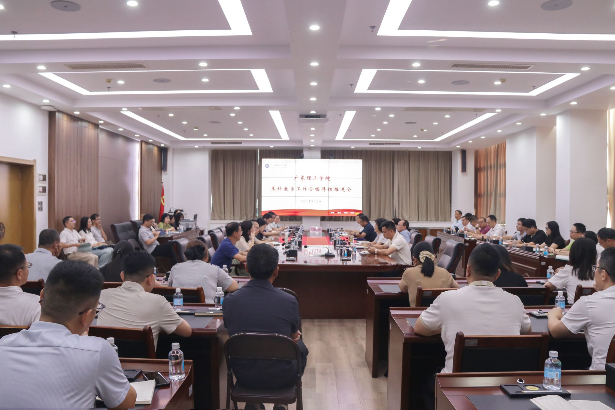 本网讯(教学质量监测与评估中心)9月2日上午,学校在高要校区综合楼12楼会议室召开本学期第1次本科教学工作合格评估推进会。全体校领导、党群及行政管理服务部门主要负责人、教辅单位主要负责人、教学单位党政领导班子、教学质量监测与评估中心全体成员参加会议,会议由学校常务副校长柴维斯主持。