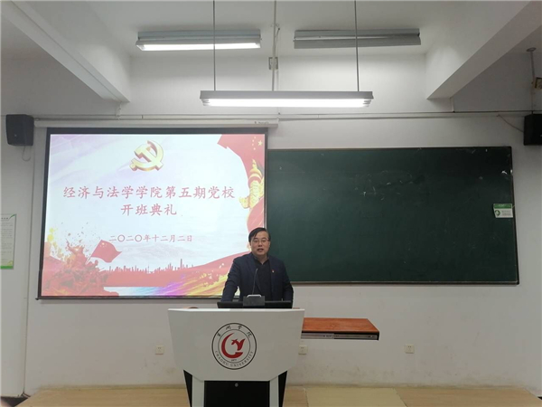 为进一步增强大学生责任意识,明确入党动机,提高党性修养,经济与法学学院于12月2日下午在慎思楼北203教室举办第五期党校开班典礼暨党课第一讲。典礼由经法学院第一党支部书记李陈主持,出席典礼的有经法学院党委书记王万海、院党委组织委员何东海、院党委宣传委员刘檾菘、学生第二党支部书记吴娜、辅导员代表江超以及本期党校72名学员。