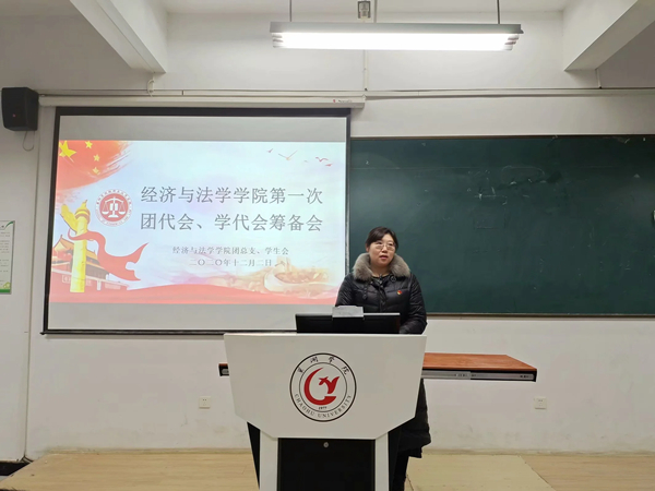 为增强学生代表对团代会、学代会的了解,发挥团、学代会联系青年学生的桥梁作用,经济与法学学院于12月2日下午在慎思楼北203教室召开经济与法学学院第一次团代会、学代会筹备会。本次会议由学生会负责人奚潇健主持,出席会议的有经法学院党委书记王万海、院党委副书记孙玮、全体辅导员以及各团学组织学生代表。
