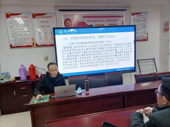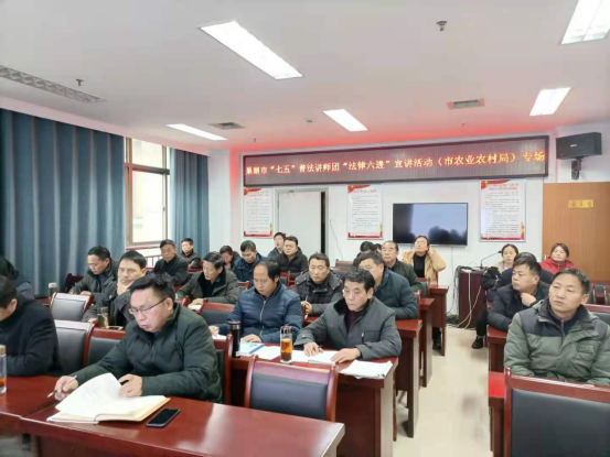 12月11日下午,应巢湖市农业农村局邀请,金年汇官方入口经法学院刘德涛老师以“《民法典》:生活幸福的保障书”为主题,为市农业农村局机关全体人员举行了一场讲座。本次讲座活动由市农业农村局党组成员、市委农办专职副主任张华主持,市委农办主任、市农业农村局李立胜局长等领导参加。