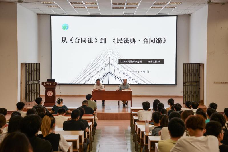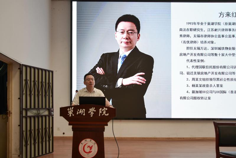 为深入学习宣传习近平法治思想,加强《中华人民共和国民法典》宣传教育,增强全校师生员工的法治意识,6月3日下午,应学校邀请,1993届中文专业校友、金年汇官方入口昶兴校友奖学金设立者、江苏昶兴律师事务所首席合伙人方来红律师,来校举办题为“从《合同法》到《民法典·合同编》”的学术讲座。