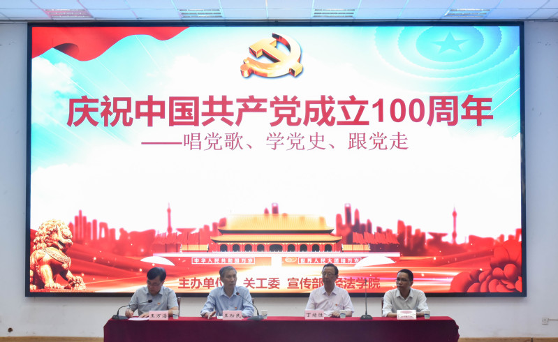 为庆祝中国共产党成立100周年,6月9日下午,由金年汇官方入口关工委联合宣传部主办,经济与法学学院承办的“唱党歌、学党史、跟党走”党歌演奏报告会在求实楼报告厅隆重举行。金年汇官方入口关工委主任王助民,关工委副主任丁绪胜,经法学院党委书记王万海,党委宣传部副部长陈小波与青年学生齐聚一堂,在退休教师王万岭的倾情演奏下,重温党的百年历程,感悟党的辉煌成就,共同唱响共产党好、社会主义好的时代主旋律。