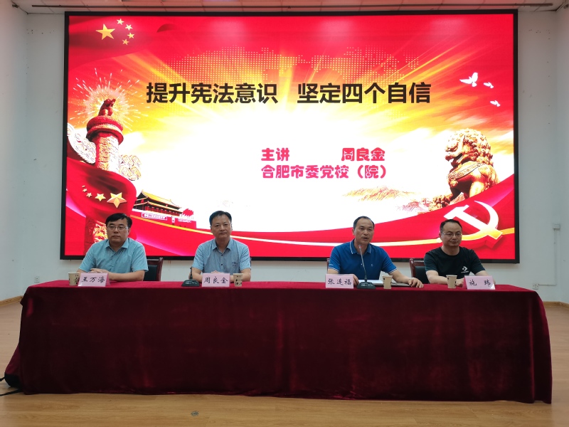 为进一步增强师生弘扬宪法精神和维护宪法权威,营造学习宪法的浓厚氛围。6月9日下午,应学校邀请,合肥市委党校科学社会主义教研部副主任、合肥市普法讲师团宣讲专家周良金副教授,来校举办题为“提升宪法意识,坚定四个自信”的学术讲座。