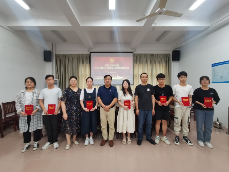 王万海首先宣读《关于表彰学院2021年度先进基层党组织、优秀共产党员和优秀党务工作者的决定》和《关于表彰经济与法学学院第六期入党积极分子培训班“优秀学员”的决定》。与会领导班子成员为表彰对象颁发荣誉证书。