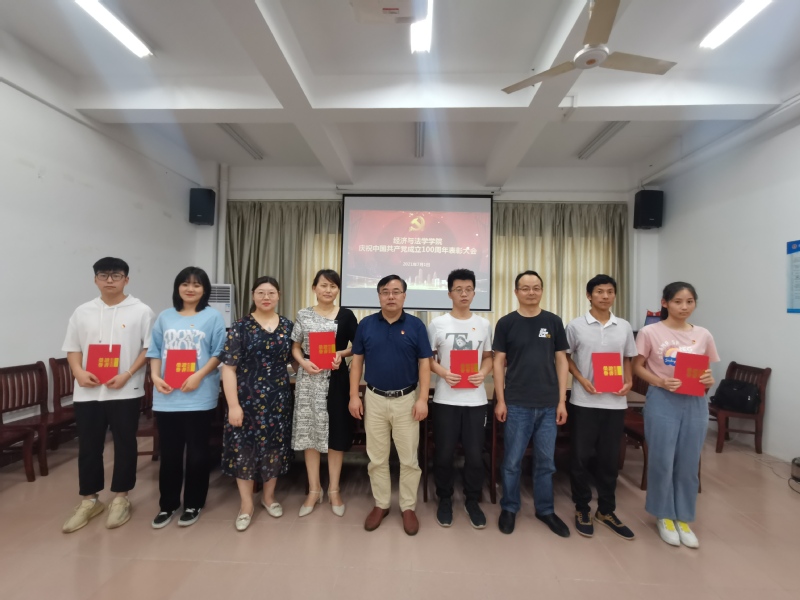 百年之后,更见风华。为庆祝中国共产党成立一百周年,进一步激励广大党员同志新时代新担当新作为,经法学院于7月1日上午在求实楼三楼会议室召开庆祝中国共产党成立100周年表彰大会。大会由经法学院党委书记王万海主持,院党委副书记、副院长施玮,副书记孙玮以及全体受表彰对象参加会议。