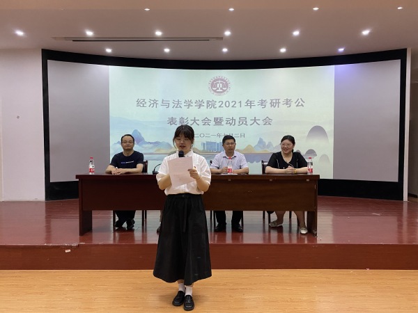 裴晶晖作为优秀学生代表从选择考研的理由、挑选专业的技巧、复习备考的历程及如何保持良好的心态等多方面向在座的同学们传授了自己的实战经验,同时她也对学院领导和老师们在思想引领、学习生活中给予的帮助表示感谢。她希望学弟学妹们能够努力奋斗,传承经法学子的拼搏精神和远大志向,争取在未来的学习、生活中取得更大进步。