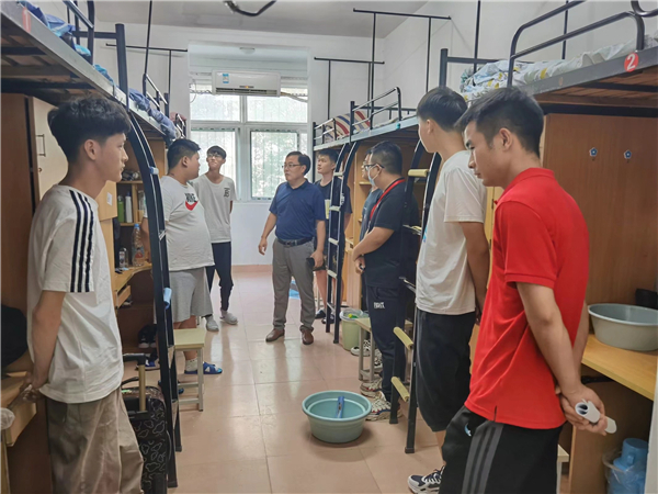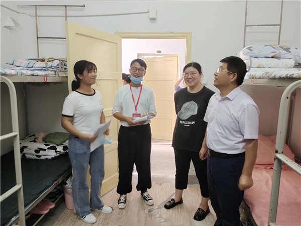 关怀备至,温暖心间。迎新期间,学院领导带领新生辅导员江超、刘向军以及助理辅导员到新生宿舍走访交流,深入了解新生的报到情况和入学体验,询问新生在学习生活上的需求,耐心解答同学们提出的问题。
