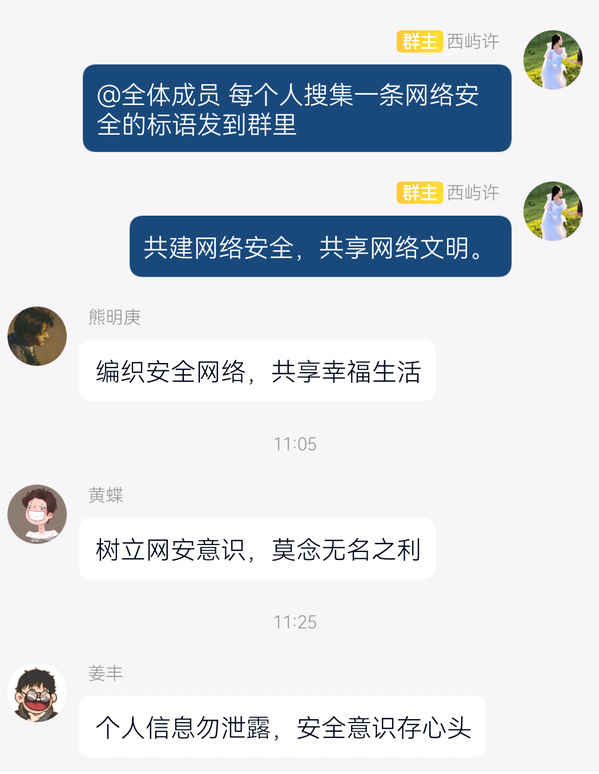 活动期间,同学们积极参与“‘守护青春 网络有你’全国大学生网络安全知识竞答”,各班级结合实际情况开展特色网络安全宣传活动。