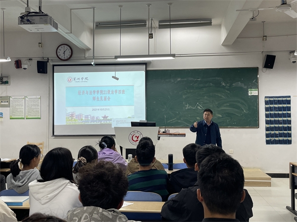 10月21日晚,经济与法学学院在慎思楼中102教室举行21级法学四班师生见面会,院长徐志仓出席,会议由辅导员刘向军主持。