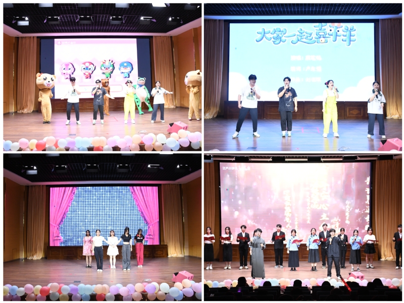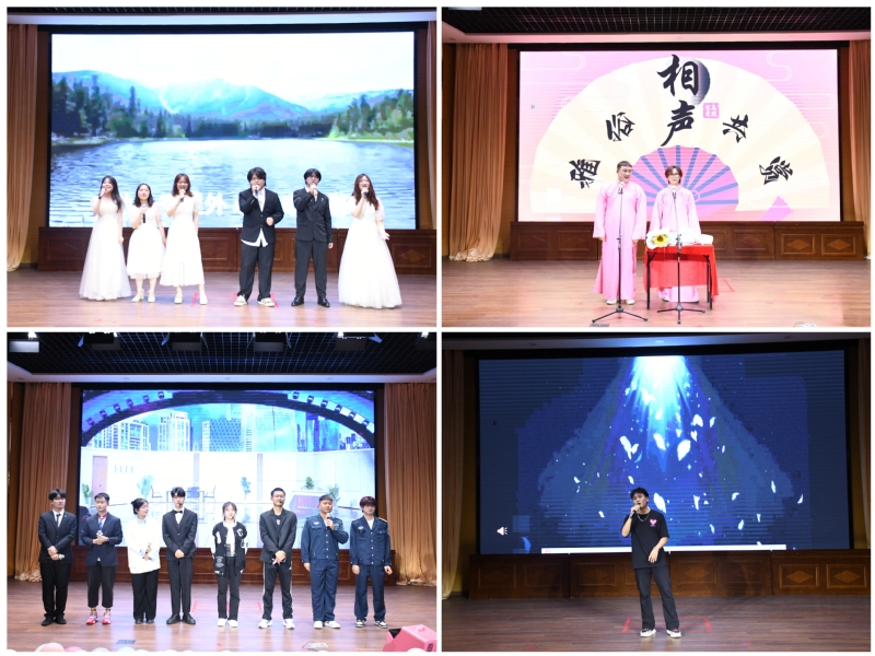 百花齐放,尽显青春本色。相声《学外语》舞蹈《彩绘夏目》小品《先生请出山》为大家带来一场视听盛宴。光如海,歌如潮,青春路上,你我都是追梦人,歌曲《我是如此相信》《I have a Dream》《开心往前飞or大家一起喜羊羊》《刻在我心底的名字》让现场的同学们欢呼声不断。小品《诈诈呼呼》在为大家带来欢声笑语的同时,宣传了反诈骗知识,为同学们敲响了预防诈骗的警钟。蔡花等6名学生为大家带来合唱《相亲相爱》,歌声中饱含着同学们对未来的无限希望,绽放着青春与梦想的光芒。整场晚会精彩不断,高潮迭起,赢得台下阵阵掌声。