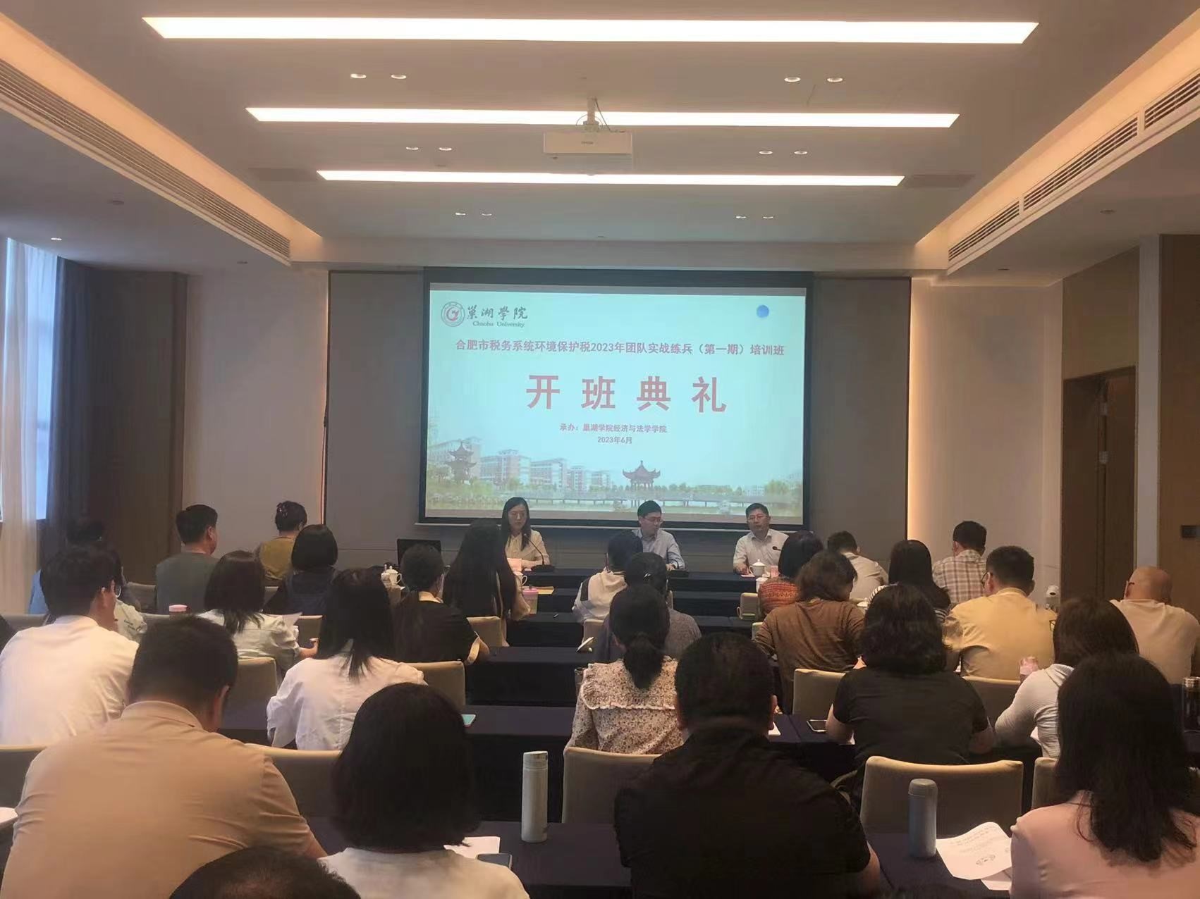 安徽省税务局资源和环境税处副处长范颖超,安徽省税务局资源和环境税处三级调研员吕琳,合肥市税务局副局长刘文军,合肥市税务局财产和行为税科副科长郑慧颖,金年汇官方入口经济与法学学院院长徐志仓,合肥各县区税务局的42名税务干部参加开班典礼,开班仪式由合肥市税务局财产和行为税科副科长郑慧颖主持。