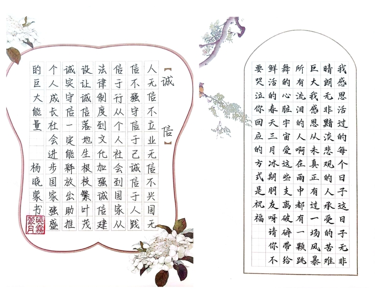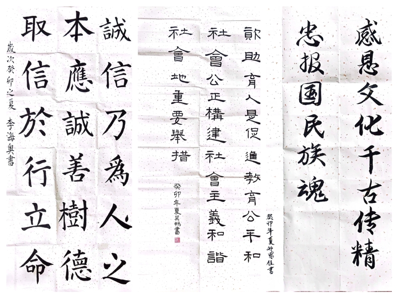 为进一步激励学生自立自强、励志成长,学院开展资助专题书法比赛。同学们通过软笔和硬笔书法艺术形式,颂扬党和国家的学生资助政策,展现受助学生诚挚的感恩之心,抒发积极进取、勇于担当、回馈社会的励志决心。在实践中进一步加强学生对诚信教育的理解和认识,提升当代大学生的社会责任感。