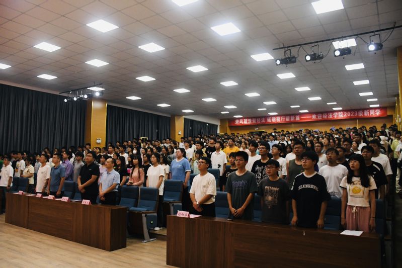 典礼在全场新生“乘风破浪聚经法 砥砺前行谱新篇”的铮铮誓言中落下帷幕。站在新起点,满怀热忱与希冀的2023级新生,必将牢记家国情、天下情,踔厉奋发、勇毅前行,在民族复兴的进程中,续写崭新篇章。