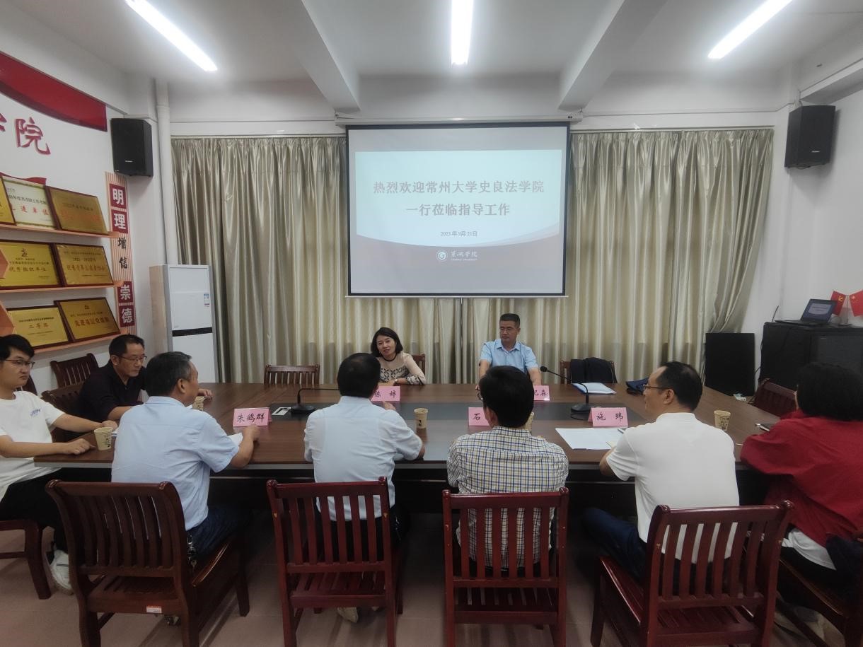 9月21日上午,常州大学史良法学院党委书记陈婷、副院长夏纪森一行来我院进行研究生联合培养签约仪式并调研交流。经法学院党委书记石庭、院长徐志仓、副院长施玮、法学系主任朱鹤群以及法学系教师代表出席本次会议。