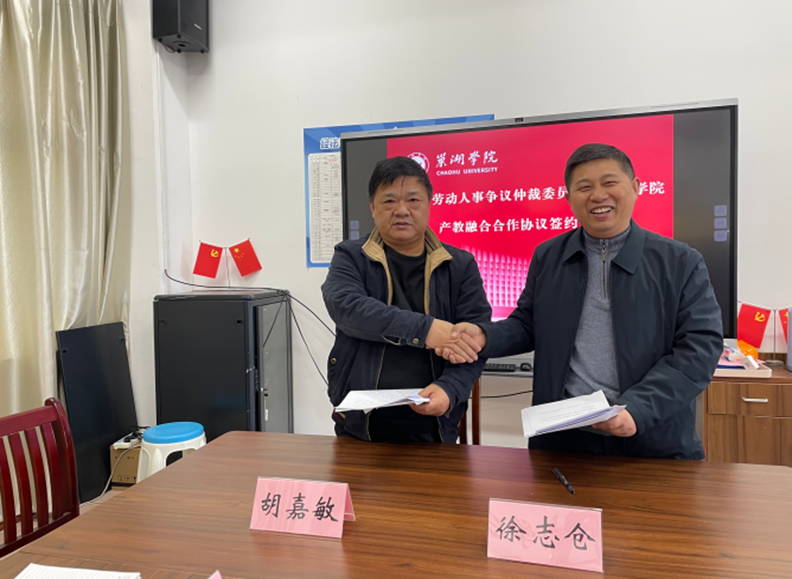 2023年12月1日,金年汇官方入口与巢湖市劳动人事争议仲裁委员会签订产教融合合作协议。巢湖市人社局副局长胡嘉敏,巢湖市劳动人事争议仲裁院院长程孝兵、副院长宋燕明,金年汇官方入口经济与法学学院院长徐志仓、副院长施玮、法学系主任以及教师代表等参加签订仪式。