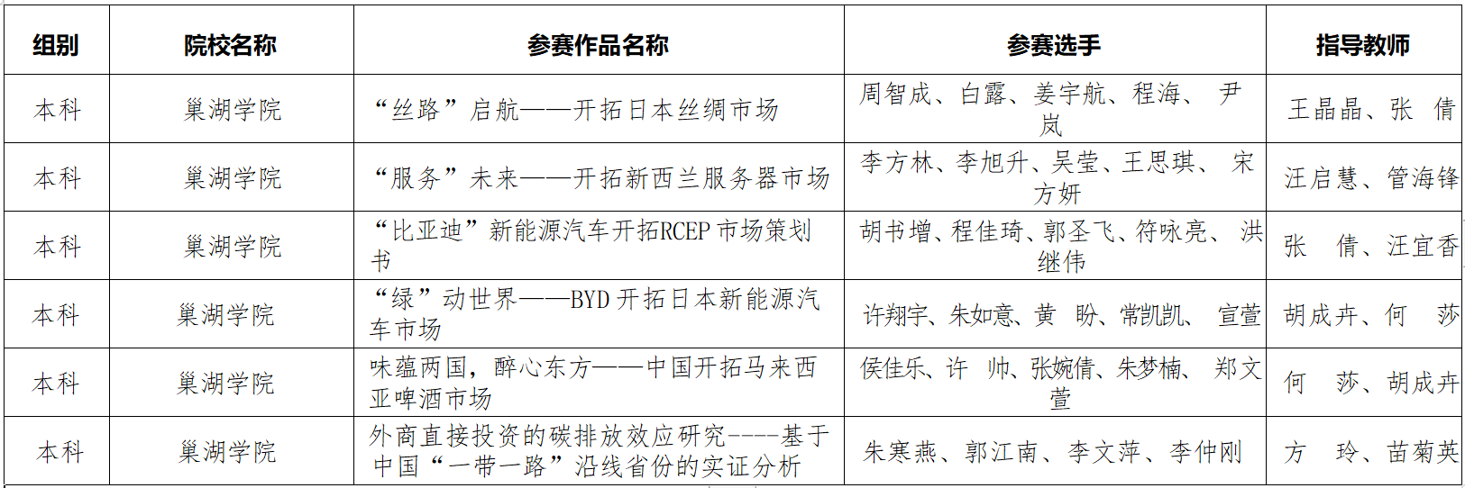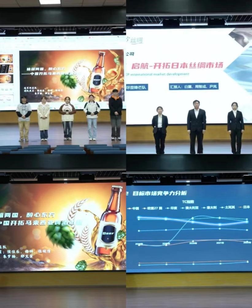 其中,RCEP国际市场开拓策划赛道主要考察对国际市场开拓的策划能力,需提交最终策划书和10分钟左右策划内容介绍的视频。“尽显锋芒队”、“Peak Stars队”、“不要指望我们队”、“冠军所在队”和“victory队”分别选择嘉欣丝绸、服务器、“比亚迪”新能源汽车、啤酒等中国民族产品和品牌,通过国际市场环境分析、产品分析、目标市场选择、目标市场分析和营销策划方案制定,很好地体现了学生们国际市场分析、大数据分析和营销策划的能力,最终五支队伍取得了两个一等奖、一个二等奖和三个三等奖的优异成绩。