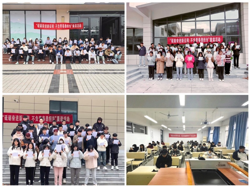 学院于11月中上旬有序组织大一各班级参加“砥砺奋进新征程,不负青春勇担当”主题晨读活动。晨钟暮鼓,不辜负汗水和前路;破釜沉舟,不愧对时光和自己。同学们踏着晨曦,迎着朝阳,与书香作伴,与智慧同行,用洪亮的诵读声唤醒宁静的巢院,从国学经典中汲取奋进力量,传承红色基因,牢记青春使命。晨读活动不仅让同学们养成多读书、读好书、好读书的学习习惯,也进一步加强学院学风建设,促使同学们从“要我学”转变为“我要学”,营造了一个良好的学习氛围,为校园文化注入了新的活力和色彩。