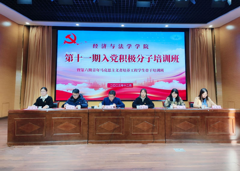 为贯彻落实习近平新时代中国特色社会主义思想和党的二十大精神,充分发挥党校培养教育党员的主阵地作用,进一步加强学生思想政治教育,经济与法学学院于12月6日下午在求实楼报告厅举办第十一期入党积极分子暨第六期“青马工程”培训班开班典礼。学院党委书记石庭,党委副书记解雪梅以及各党支部书记出席典礼,典礼由培训班班主任徐红杏主持,培训班全体学员参会。