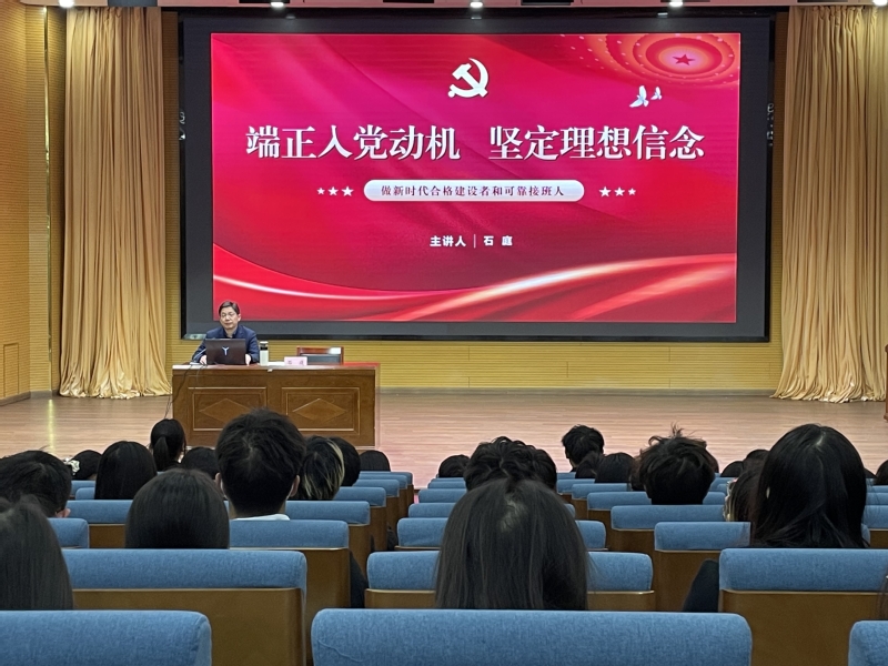 开班典礼结束后,石庭为学员讲授题为《端正入党动机,坚定理想信念》的党课第一讲课程,他从什么是入党动机、为什么要端正入党动机、大学生如何端正入党动机等几个方面展开分析,以《中国共产党发展党员工作细则》为切入点,要求全体学员要将端正入党动机与发挥先锋模范带头作用落实到行动上,全力践行“六个一”学业提升计划要求,向先锋模范学习,不断完善自己,始终坚定理想信念,锤炼党性修养,自觉做共产主义远大理想和中国特色社会主义共同理想的坚定信仰者和忠诚实践者。(文/徐红杏 图/刘梦雯 初审/解雪梅 终审/石庭 发布/季鹏程)