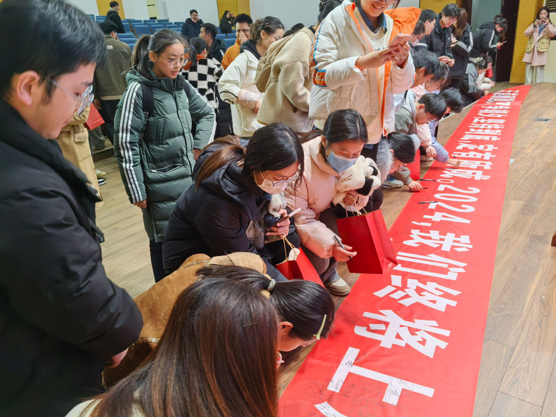 研路暖暖,真情护航。学院为每位考研学子发放了“考研助力大礼包”,助力考研学子研冬折桂。同学们在横幅上签字留念,写下最美好的祝愿和充满能量的话语。“星光不负赶路人、时光不负有心人”“乾坤未定,你我皆是黑马”“有志者事竟成”“此战必胜,金榜题名”……希望所有考研学子执笔为剑,披荆斩棘,以梦为马,不负韶华!所有的付出与汗水都能结出最丰厚的果实!