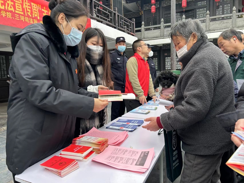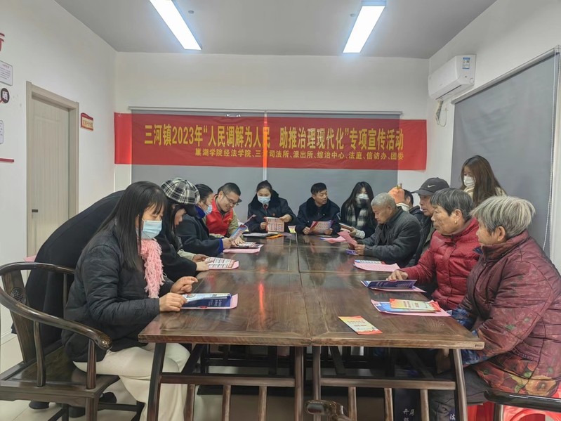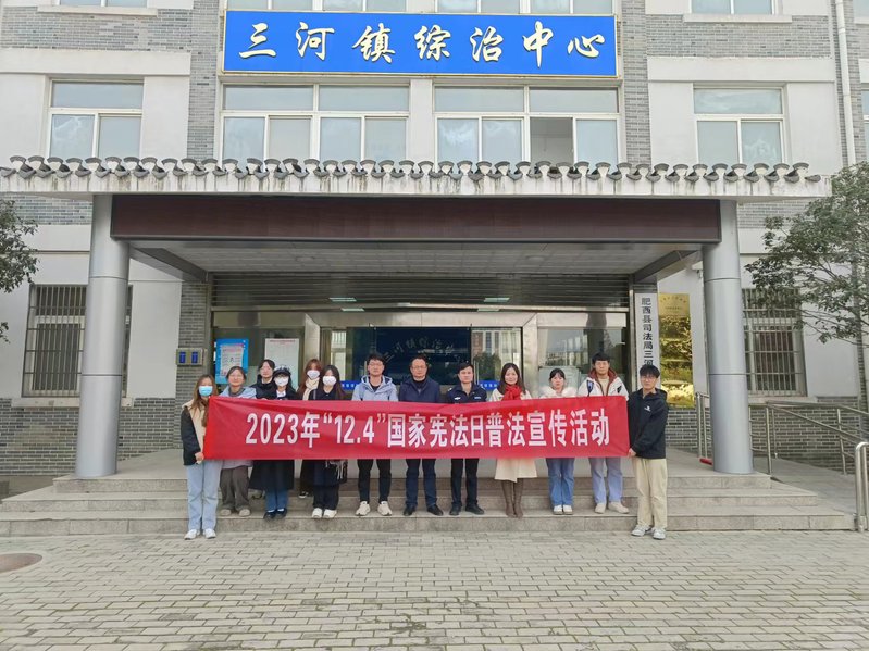 12月4日,金年汇官方入口一行赴肥西县三河镇联合开展宪法宣传教育活动,双方共同为平安三河校地共建室揭牌并召开座谈会。组织专业教师、学生党员、学生干部前往三河镇万年台景区、三河镇中心学校和二龙家园(百姓评理说事点)等地进行宪法宣传,向游客及群众发放宪法宣传品及相关法律法规宣传折页,现场解答群众法律咨询,面向学生开展专题讲座,讲述生活中的宪法。