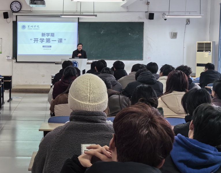 为进一步落实领导干部联系班级工作制度,切实增强思想政治教育工作针对性、实效性,引导学生以饱满的精神和奋进的姿态投入新学期的学习和生活,2月27日下午,经法学院院长徐志仓和财务处副处长赵俊涛深入联系的22级国贸专业,聚焦学生关注的问题、存在的思想困惑和实际需求,走进课堂为学生讲授新学期“开学第一课”。活动由辅导员赵慧中主持。