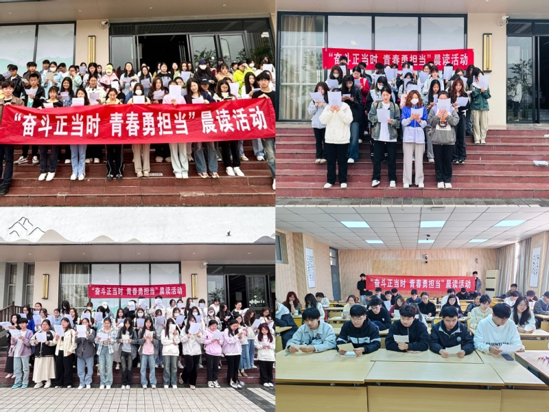 为深入学习贯彻习近平新时代中国特色社会主义思想和党的二十大精神,引导青年学子热爱中华文化、增强历史自觉和文化自信,培养学生良好的阅读习惯,经济与法学学院于4月8日至14日组织大一各班级接力开展“奋斗正当时 青春勇担当”主题晨读活动。