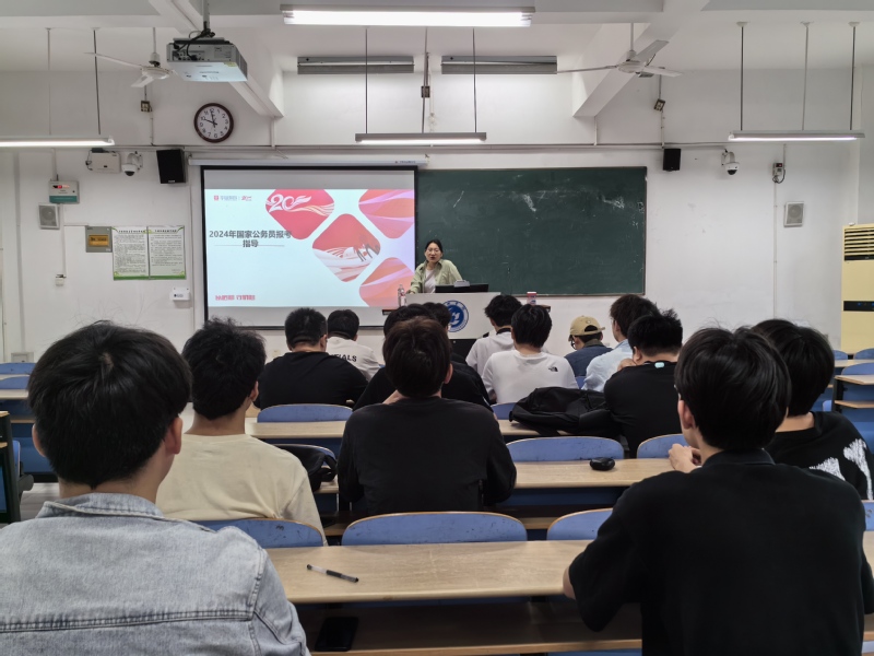 为加强学生考公全过程指导帮扶,提高应试技巧,助力学生高质量就业,5月21日,经济与法学学院在慎思楼北104举办公务员备考指导公益讲座。本次讲座涵盖了考情分析、公告解读以及考试变化趋势等内容,吸引了20届、21届共80余名学生参与。
