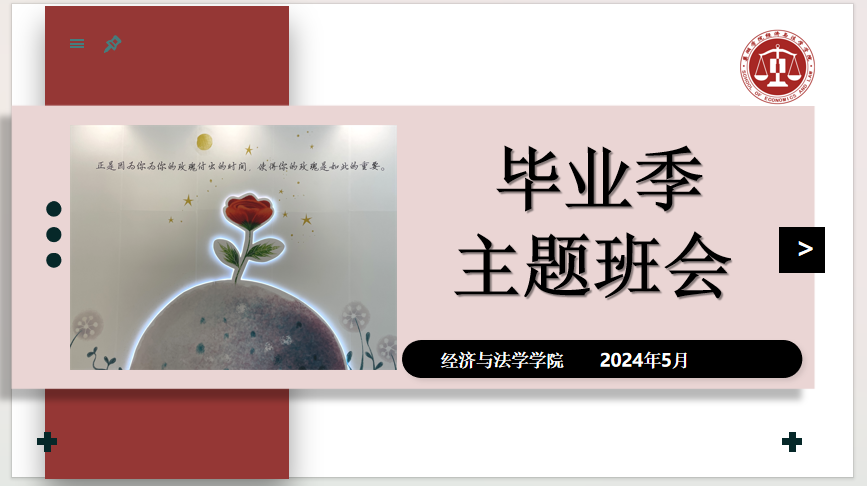 来日方长暂作别,循光而往踏歌行。5月20日至5月24日,经法学院召开2024届毕业生“心怀感恩,文明离校”主题班会。各班辅导员充分肯定毕业生们四年来勤奋好学、积极进取的学习状态,并就毕业生考研、就业等未来发展问题进行交流和解答,希望毕业生们在未来的工作和生活中能够继续保持昂扬向上的奋斗姿态,热爱母校,以校为荣,牢记“德学并举,知行合一”的校训,为社会做出更大的贡献,同时期盼毕业生们能够以实际行动践行文明、和谐、有序离校的理念,将美好记忆留在母校,将精神风貌传承下去。毕业生们表示将时刻保持感恩之心,感谢母校的培养和关怀,感谢老师们的辛勤付出和教诲,同时在未来的工作和生活中注重自我提升和成长,不断学习和进步,勇于创新和突破,努力实现自己的人生价值。